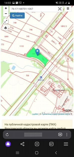 76:17:168701:1067 Продаю участок около посёлка Дубки на 268 км железной дороги. Сразу справа за переездом. Рассмотрю варианты обмена на участок ижс лпх или автомобиль. Адрес: Ярославская обл, р-н Ярос...