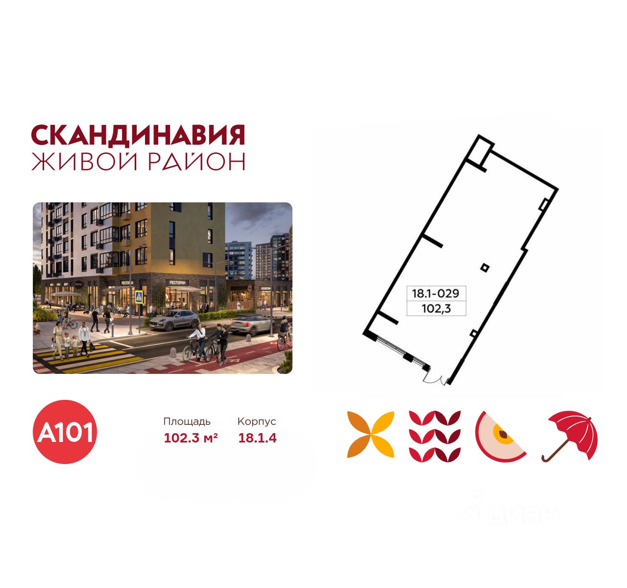 Продажа от застройщика А101! Продается торговое помещение площадью 102.30. на 1-м этаже ЖК "Скандинавия". Технические характеристики помещения: - Помещение свободного назначения с отдельным входом и о...