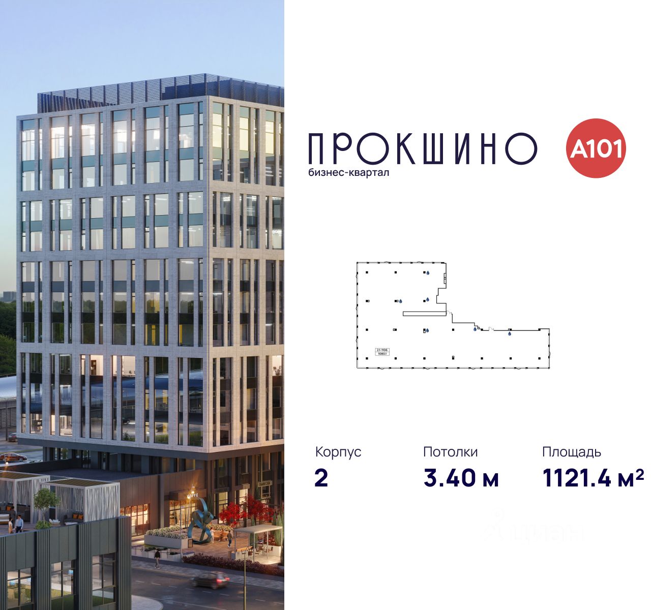 Продаётся офисное помещение площадью 1121.4 кв. м. в Бизнес-квартал "Прокшино". Без отделки. Окна с видом во двор. Высота потолков 3.4 м. Выделенная электрическая мощность — 90 кВт. Общий вход со двор...
